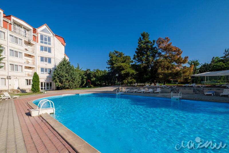 - Бассейн площадью 300 м2, длиной 25 м с глубинами от 1 до 2 м.